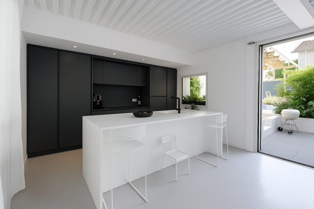 Le design intérieur met en avant des lignes épurées, des volumes généreux et une palette de couleurs neutres, créant une atmosphère sereine et sophistiquée.